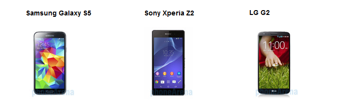 Samsung Galaxy S5 vs Sony Xperia Z2 vs LG G2
