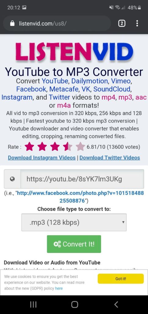 Se non vuoi usare nemmeno Telegram per scaricare musica da YouTube Android, nessun problema. Abbiamo un'altra soluzione: un sito internet accessibile da qualsiasi browser internet.