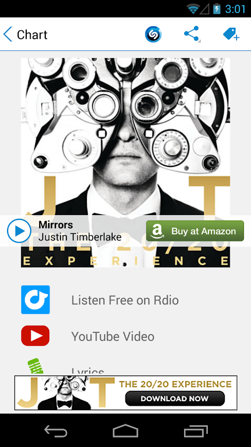 Upgrade to Shazam Encore for no banner ads and exclusive features – link to Pandora and get music recommendations.