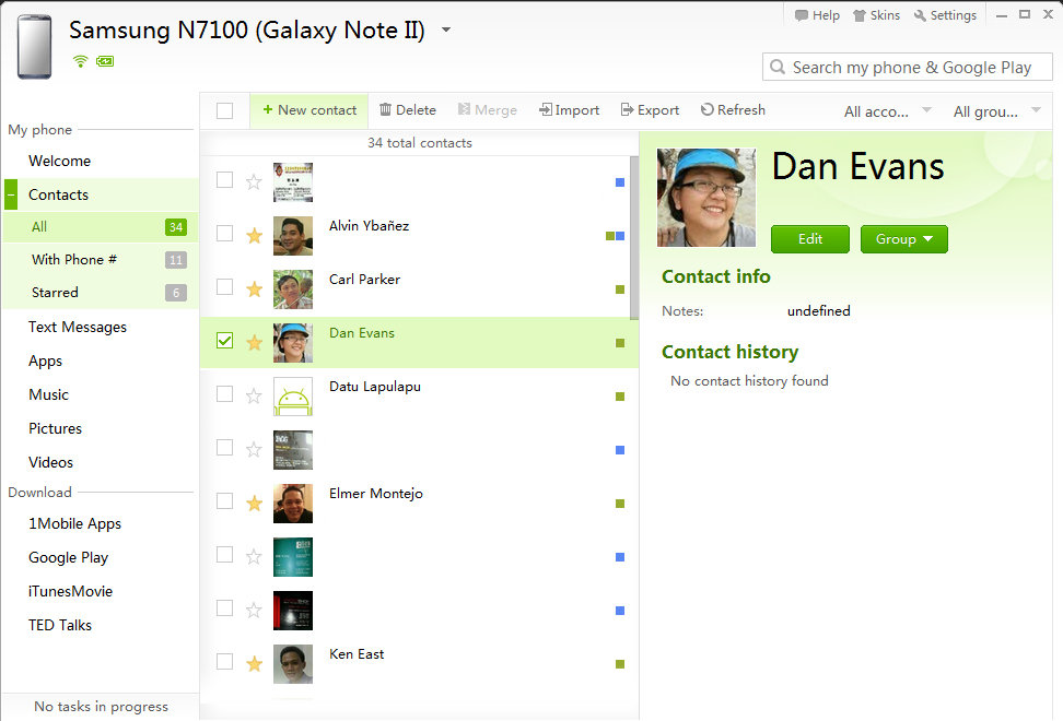 - gestire, organizzare, modificare e sincronizzare i contatti della rubrica di Android da PC