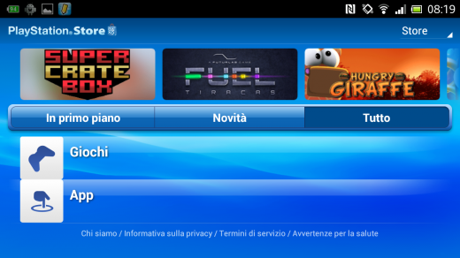 In alto troviamo alcune schede a scorrimento degli elementi in primo piano; più in basso invece troviamo i link per dirigerci nel settore Giochi o App.