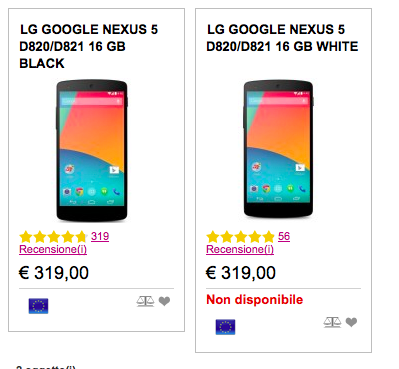 Ad oggi il prezzo richiesto da Gli Stockisti per il Nexus 5 è sicuramente il più basso che si possa trovare su internet.