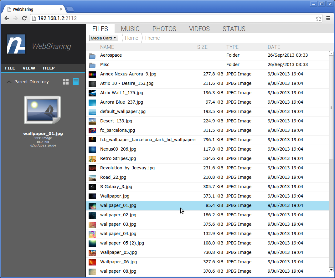 L'applicazione prende il nome di Websharing e al momento non è disponibile sul Google Play Store ma come un semplice file APK da installare tramite un normale file manager come Astro, File Expert o altri.