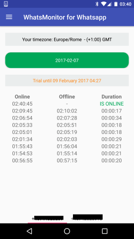 Potete usare WhatsMonitor for Whatsapp ad esempio per sapere quando i vostri amici o conoscenti sono online, senza che loro possano sapere che li state spiando. In questo modo nessuno vi potrà più dire di non aver letto i vostri messaggi o di non essersi collegato a WhatsApp, perchè WhatsMonitor for Whatsapp controllerà la situazione per voi, registrando anche tutti gli orari di accesso della persona che volete spiare. Fantastico, vero?