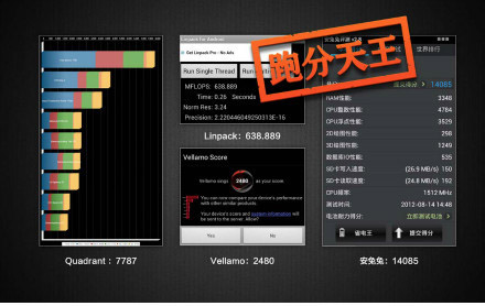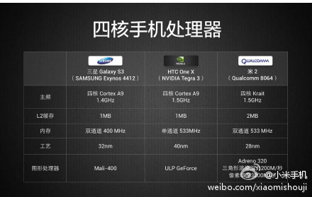 A seguire trovate alcune immagini che mostrano un confronto tra la potenza sprigionata da questo Xiaomi Phone 2 e tra quella offerta da smartphone Android di fascia alta come Galaxy S 3 e HTC One X.