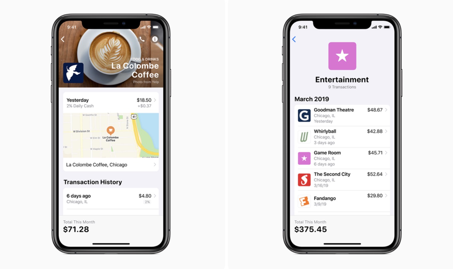 Gli acquisti vengono automaticamente sommati e organizzati in categorie con colori differenti come cibo e bevande, shopping e intrattenimento. Per aiutare i clienti a comprendere meglio le loro spese, Apple Card fornisce riepiloghi di spesa settimanali e mensili.