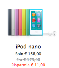 Solo 11€ di sconto per il nuovo iPod Nano
