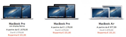 Su tutti i MacBook, con qualsiasi configurazione e caratteristica, lo sconto è di101€.