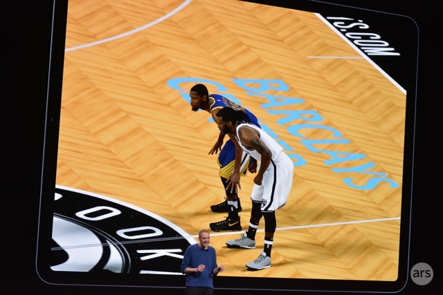 Sul palco di New York è stata mostrata la potenza di questo nuovo iPad Pro 2018, grazie ad un titolo di basket di 2K: grafica da urlo, paragonabile a quella di una console. Il nuovo iPad propone un livello di definizione inimmaginabile, anche per gli spettatori e gli spalti, quindi elementi secondari. Il livello di definizione dei giocatori è semplicemente spettacolare, con un rendering di 6 milioni di pixel senza upscale.