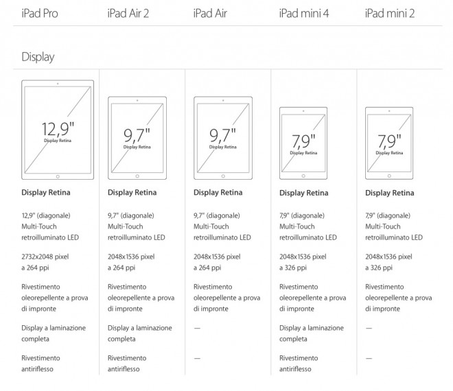 Monta un pannello LCD Retina (laminazione completa e trattamento antiriflesso) da 7,9 pollici con risoluzione di 2.048 x 1.536 pixel.