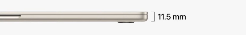 Con uno spessore di soli 11,5 mm, il nuovo MacBook Air è il portatile da 15″ più sottile al mondo. Ed è anche leggero: pesa meno di 1,5 kg.