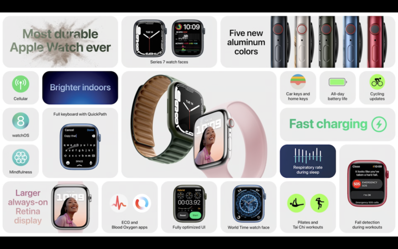 Apple Watch Series 7 sarà disponibile a partire dall'autunno 2021 a un prezzo di partenza di 399 dollari.
