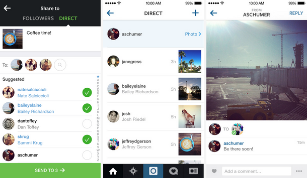 In quasi 3 anni la community di Instagram si è espansa sempre più raggiungendo quota 150 milioni di persone e da oggi, grazie ad Instagram Direct, sarà possibile inviare foto e video non più solamente a tutte le persone che ci seguono bensì direttamente ed esclusivamente a determinate persone.