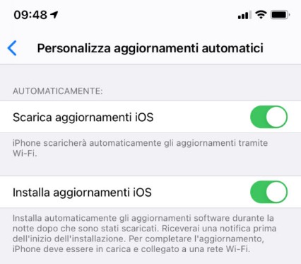 Con le precedenti versioni di iOS era possibile installare automaticamente gli aggiornamenti software durante la notte dopo aver effettuato il download manuale.