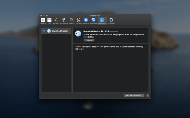 Nel momento in cui volessi liberarti di Skynet o tornare a vedere le pubblicità sui siti internet che apri tramite Safari, non dovrai fare altro che mettere in pausa l'estensione dalla sua interfaccia.