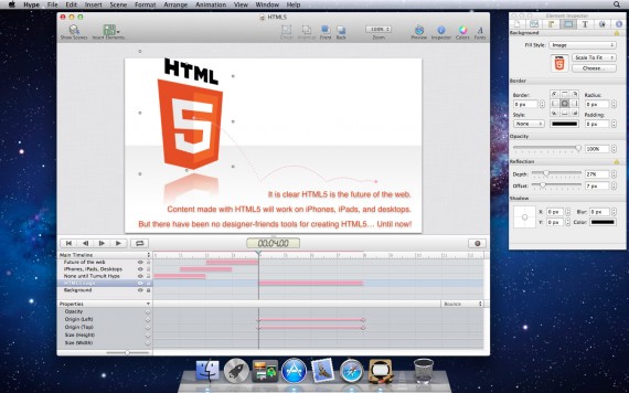 Hype, software di animazione in standard HTML5 sviluppato da due ex dipendenti Apple, Jonathan Deutsch e Ryan Nielsen, con cui è possibile creare animazioni accattivanti e compatibili sia con i browser dei terminali mobile (iPad, iPhone, il browser integrato su Android o nei telefoni WP) sia con i sistemi desktop e laptop quindi Safari, Chrome, Firefox e, per gli utenti Windows, Internet Explorer. Il valore del programma è pari a 39,90 dollari