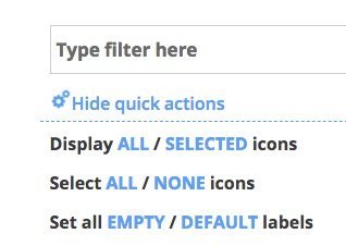 - facendo un esempio delle icone, clicca sulla voce "Application icons", da qui clicca su Hide quick actions (in alto) > Select ALL per selezionare tutte le icone presenti nella pagina