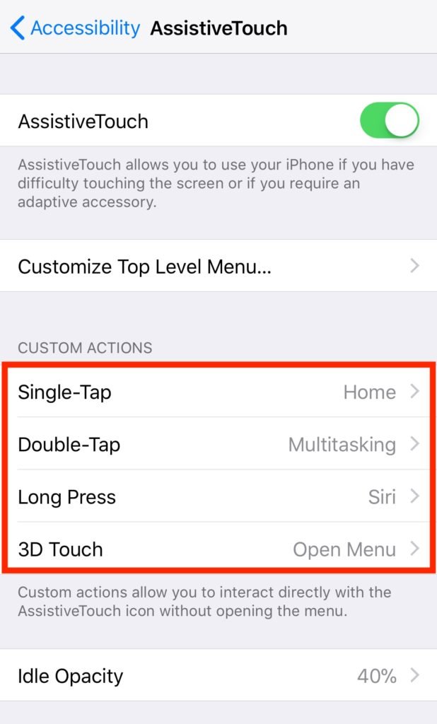 - Aprire la sezione Assistive Touch