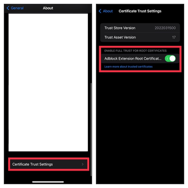 - Scorri in fondo fino ad arrivare a "Attendibilità certificati" ed attiva la spunta su Adblock Extension Root Certification
