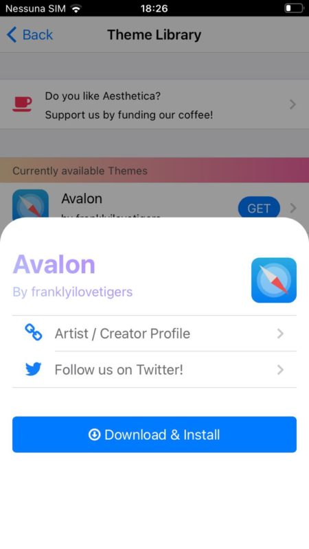 - clicca sul nuovo profilo Aesthetica Theme Engine > Installa e ancora Installa fino al completamento dell'operazione
