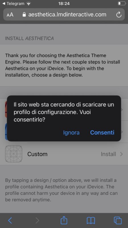 - clicca sul nuovo profilo Aesthetica NOME DEL TEMA CHE HAI SCELTO > Installa e ancora Installa fino al completamento dell'operazione