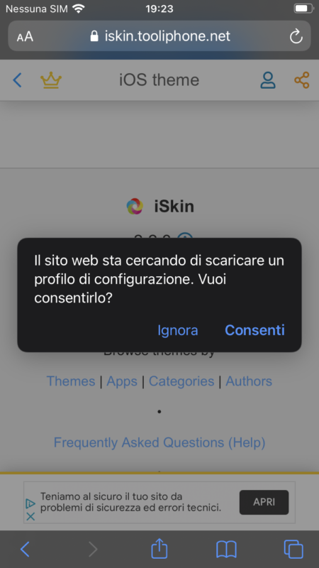 - compare un messaggio che ti chiede conferma per scaricare un profilo: clicca su CONSENTI