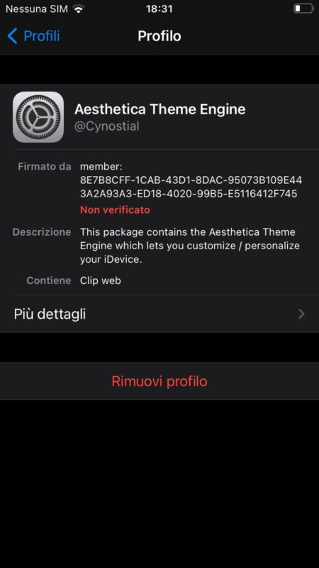 - Vai nelle Impostazioni di iOS > Generali > Profili > e clicca sul nome del tema che hai appena scaricato, quindi clicca in alto a destra su Installa, poi clicca su Fine per tornare indietro