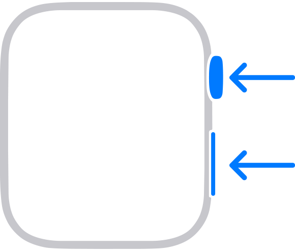 - Con due dita, premi contemporaneamente la Digital Crown e il tasto laterale. Lo schermo lampeggia mentre l'istantanea viene acquisita.