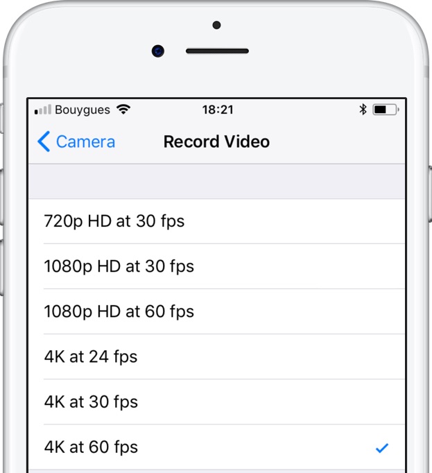 - 4K at 60 FPS (risoluzione più alta, più fluida)— iPhone 8, iPhone 8 Plus and iPhone X