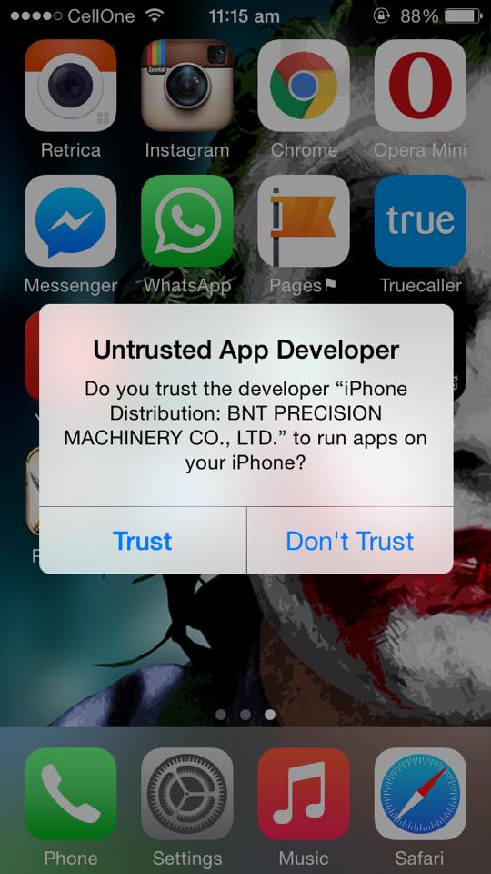 Step 3. Ad installazione completata, avvia l'app. Comparirà il messaggio di errore ‘Untrusted Enterprise Developer’. Nessun problema: segui le indicazioni al punto successivo per procedere