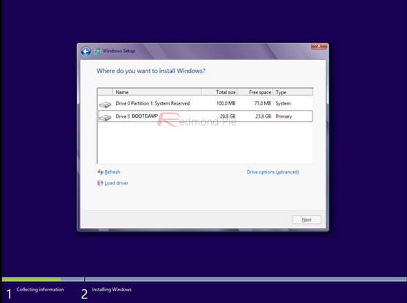 Cliccate quindi su "Installa" e inserite i dati di login per il Mac. A questo punto Boot Camp andrà a creare la partizione per Windows sul disco fisso del Mac. A procedura completata, Boot Camp riavvierà il Mac e partirà l'installazione di Windows. Il procedimento per installare Windows è identico a quello che troviamo normalmente sui PC Windows, senza alcuna differenza.