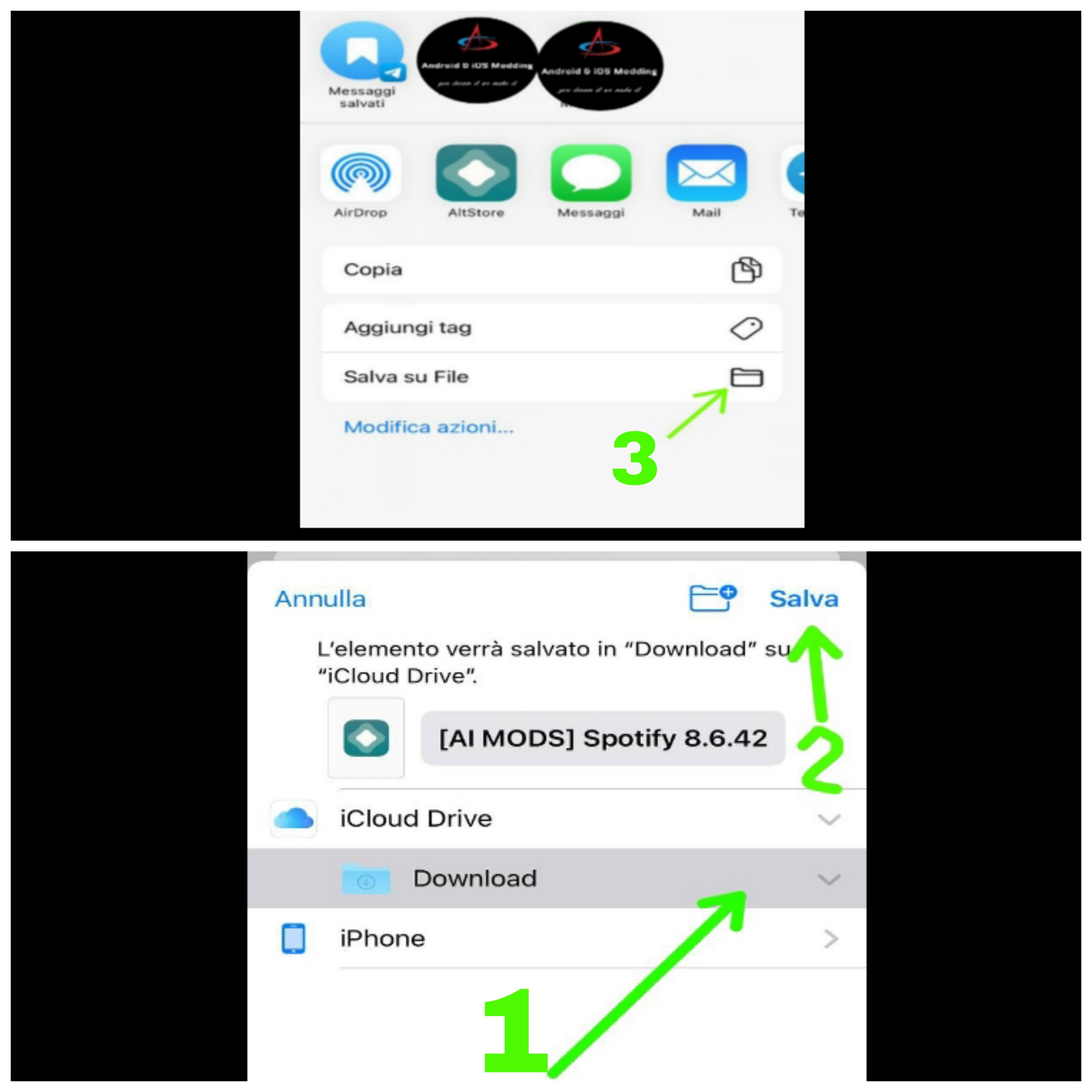 - Successivamente seleziona "Salva su file > download > salva" per salvare il file su iPhone