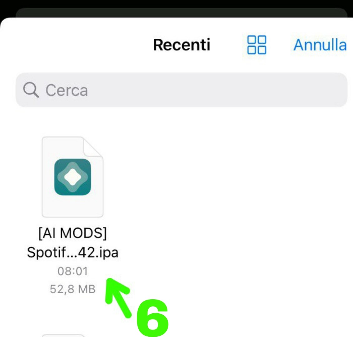 - Ovviamente scegli il file IPA scaricato ad inizio guida e installalo (come già detto, nelle immagini c'è scritto Spotify, ma tu dovrai chiaramente usare il file di X (Twitter) MOD)