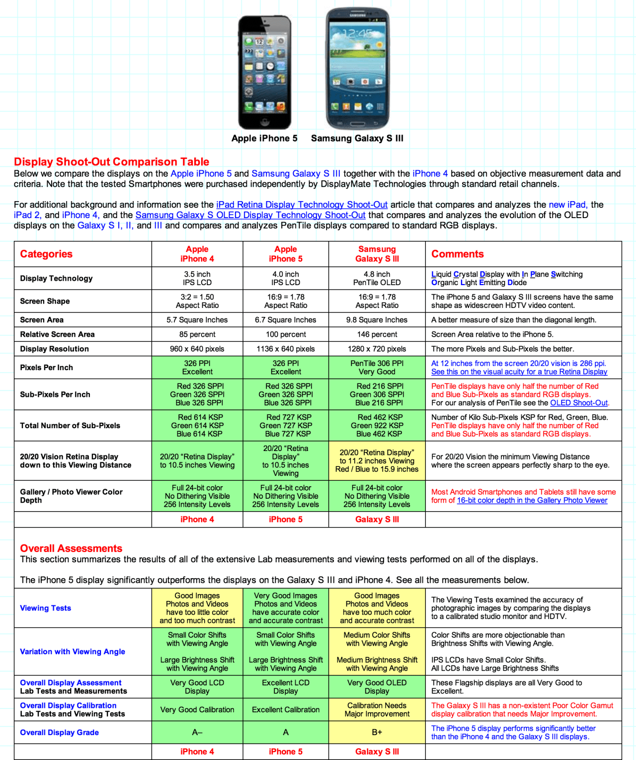 Per maggiori dettagli, trovate tutto il necessario qui: http://www.displaymate.com/Smartphone_ShootOut_2.htm