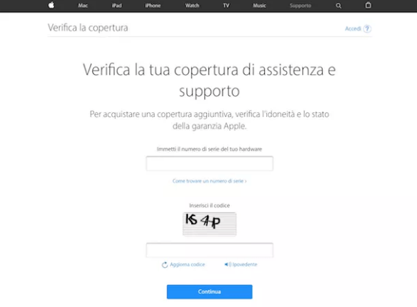 VERIFICA ONLINE SUL SITO APPLE LA REALE COPERTURA DI GARANZIA E RICHIEDI ASSISTENZA