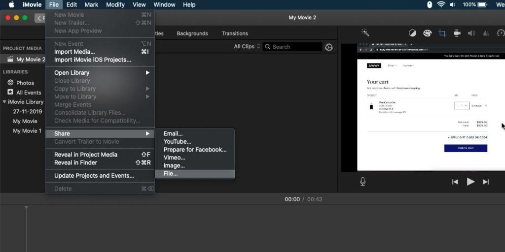 A questo punto non c'è molto altro da fare: devi solo andare in File>Share>File ed esportare il filmato in formato MP4.