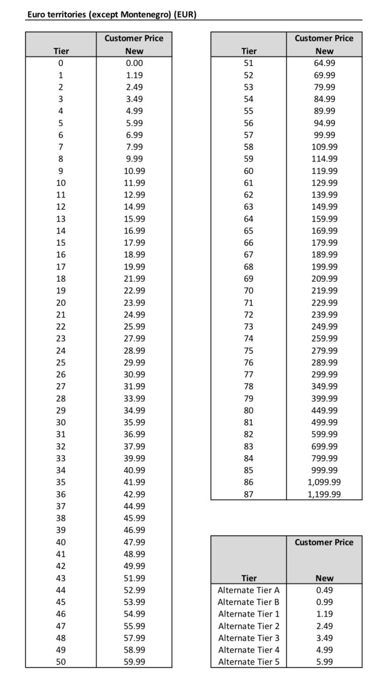 Ecco di seguito la tabella completa con tutti i nuovi prezzi di App Store a partire dal 5 Ottobre 2022.