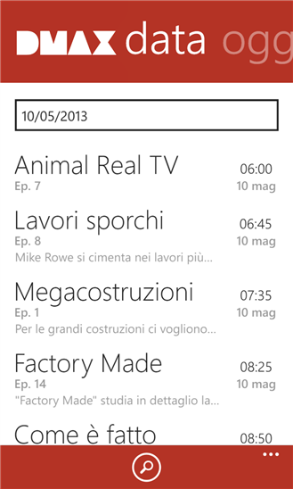 DMAX approda nello Store di Windows Phone con questa fantastica applicazione che ti consente di visualizzare il palinsesto odierno e dei giorni a venire.