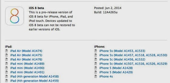 - Scaricate iOS 8 Beta 1 in base al vostro modello (Esempio A1457)