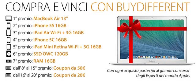 Grande concorso per i 10 anni di BuyDifferent: in palio, MacBook Air, iPhone 5S, iPad Air e molti altri premiEcco come vincere MacBook Air, iPhone 5S, iPad Air con BuyDifferent!Se vi state preparando...