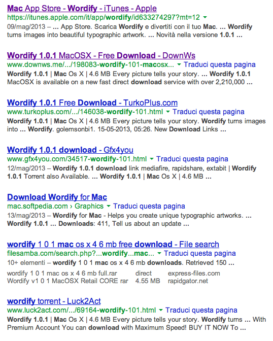Come vi ho precedentemente detto si basa tutto sull'esperienza in rete, basta che tenete a mente quali siti contengono materiale gratuito e quali non, infatti come vi dicevo downws.me contiene materiale "interessante", mentre è ovvio che avrei scartato immediatamente itunes.apple.com ed altrettanto mac.softpedia.com tra cui quest'ultimo contiene solo versioni demo delle app!