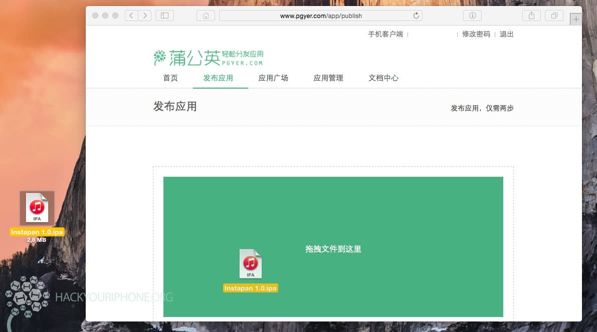 Andate su http://www.pgyer.com/app/publish, effettuate il login, quindi trascinate letteralmente nella pagina internet il file o l'applicazione che volete caricare direttamente sul vostro iPhone, iPod e iPad. Fatto questo, in automatico partirà il caricamento dell'applicazione sul web. Ovviamente la velocità di caricamento dipende tutta dalla vostra connessione internet: per giochi o app particolarmente pesanti potrebbe volerci molto tempo.