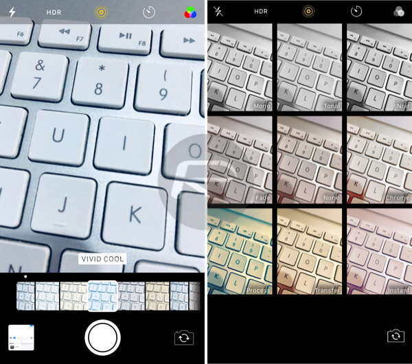 Effetti Fotocamera: con iOS 11 l'app Fotocamera mostra gli effetti disponibili nella parte in basso del display in modo che possano essere applicati più velocemente.