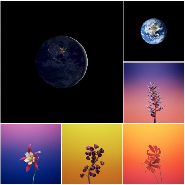 Diversi sfondi sembrano essere un tributo alla storia di Apple: torna lo sfondo della terra declinato in tre versioni, ed arrivano vari sfondi con un motivo a sei colori. Oltre a questi ci sono anche alcuni sfondi floreali e tre con dei giochi di colore.