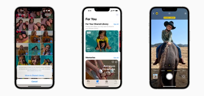 A riguardo delle foto, Apple ha introdotto la Libreria foto condivisa di iCloud, una libreria di iCloud che permette a un massimo di sei utenti di contribuire, collaborare e accedere alla libreria condivisa.