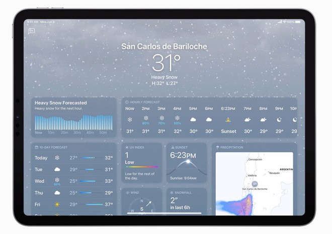 Si aggiorna Meteo e finalmente sfrutta la dimensione del display di iPad con animazioni e informazioni, oltre che con mappe e dati specifici sulla qualità dell'aria e la temperatura.