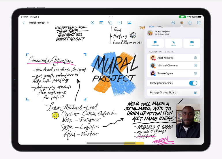Apple parte proprio da Collaboration nella descrizione del nuovo sistema operativo: la funzione la troveremo non solo su iPad, ma anche su iOS e macOS, così da rendere lo strumento perfettamente compatibile su tutte le piattaforme dell'ecosistema Apple.