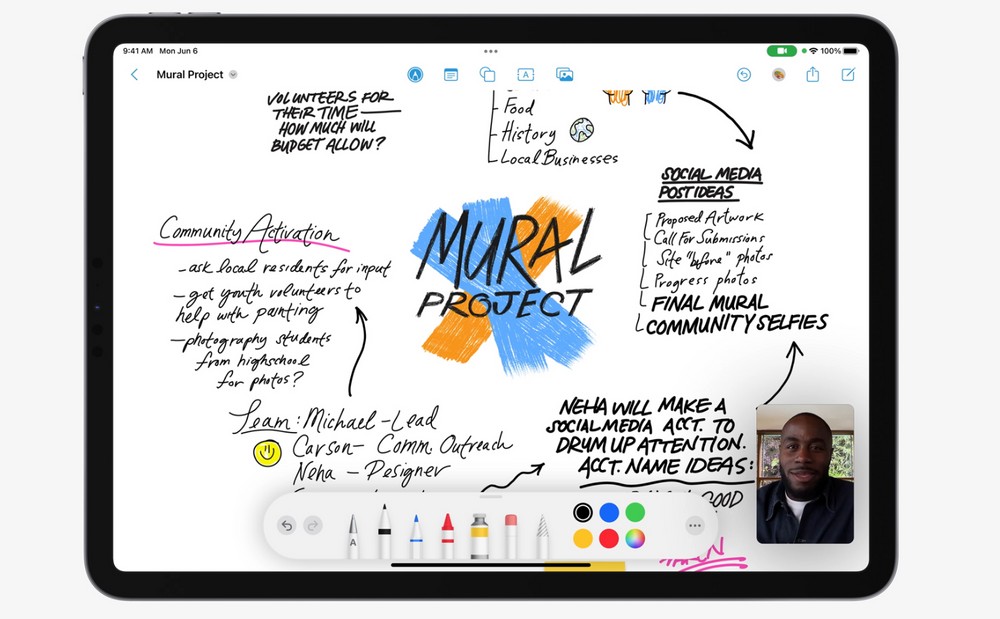 Tutto avviene in contemporanea, e tutti sono in grado di sapere chi ha aggiunto cosa. Freeform arriverà con iPadOS 16.Freeform