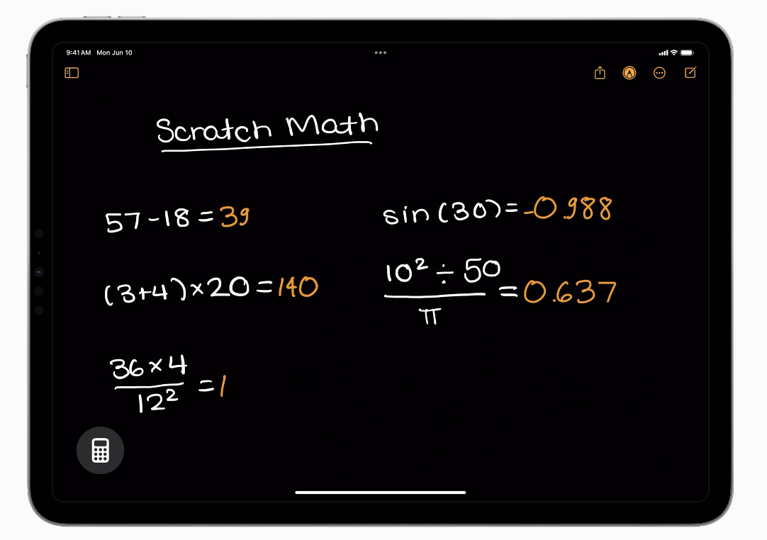 L’app Calcolatrice su iPad offre un nuovo modo di fare i calcoli con Math Notes