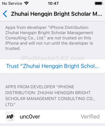 - Ora vai su Impostazioni-> Generali -> Gestione dispositivi. Tocca il nome dello sviluppatore e considera attendibile il certificato